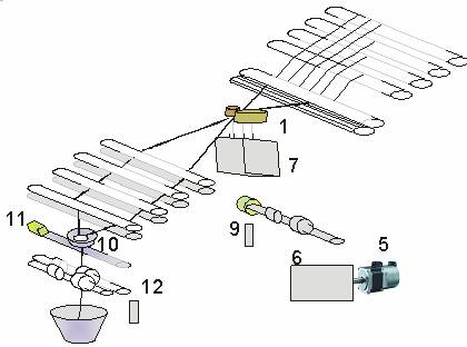 按一下監(jiān)控鍵進入下面監(jiān)控屏畫面,按回主畫面鍵返回主屏。此畫面直觀模擬顯示并條機整體運行狀態(tài)。故障點的燈白表示正常,灰色表示故障該點處理。