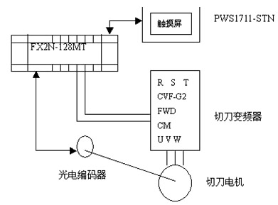 ![]() 3.2 剪切機(jī)的變頻控制 根據(jù)客戶(hù)要求需要將加工紙剪切成不同長(zhǎng)度規(guī)格,其主要通過(guò)剪切裝置實(shí)現(xiàn)。切紙單元的變頻控制示意圖如圖4所示。