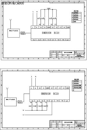 采用一臺EC20-1006BRA作簡單的繼電連鎖,除了和舊系統(tǒng)進行連鎖(互鎖),還有變頻器的簡單啟動和停止及報警。本系統(tǒng)還另外裝有一臺EC20-1006BRA,通過串口與一臺數(shù)傳電臺相通訊(MODBUS),來實現(xiàn)和另外一個水泵房(凈環(huán)泵房)實現(xiàn)連鎖。當(dāng)璇流井有高液位報警時,通過PLC及數(shù)傳電臺傳送到凈環(huán)泵房,由操作人員確定水泵的啟動和停止(由于二者距離太遠,且不適合電纜敷設(shè),所以采用無線數(shù)傳的方式)。 其中璇流井內(nèi)PLC設(shè)置為主站,凈環(huán)內(nèi)PLC為從站。數(shù)傳電臺采用深圳科立訊生產(chǎn)的PT6080無線數(shù)傳電臺是利用先進的單片機技術(shù),無線射頻技術(shù),數(shù)字處理技術(shù)設(shè)計的功率較大,體積較小的模塊式半雙工數(shù)傳電臺,采用SMT新工藝,選用高質(zhì)量的元器件。抗干擾能力強,精致堅固,結(jié)構(gòu)緊湊,安裝方便。數(shù)話兼容,數(shù)傳可優(yōu)先。RS232、RS485及TTL多種接口可供選擇,適應(yīng)面寬。參見下面原理圖: