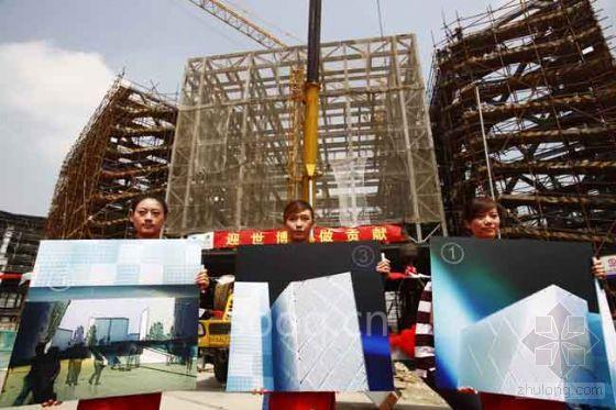 世博會(huì)國(guó)家電網(wǎng)館實(shí)現(xiàn)鋼結(jié)構(gòu)封頂