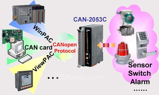 CAN-2053C可通過CANopen Network將開關(guān)、警報(bào)、傳感器等設(shè)備的狀態(tài)及時回傳給CANopen master