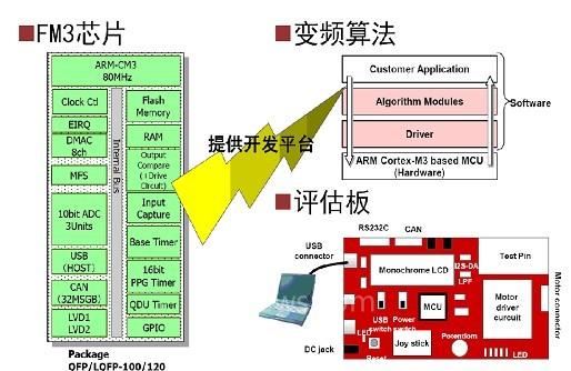 再者,MCU集成了變頻驅(qū)動(dòng)的算法,并提供源代碼級別的參考和定制。這一特性較之“DSP+MCU”的模式大大降低了設(shè)計(jì)門檻和系統(tǒng)復(fù)雜度。由于變頻技術(shù)和算法是富士通中國本地團(tuán)隊(duì)自主研發(fā),因而可根據(jù)中國客戶的需求改動(dòng)算法,并且固件系統(tǒng)是拆成若干軟件模塊形式,客戶可以靈活選擇,組成自己的系統(tǒng)。這種本地深度技術(shù)支持服務(wù)是其他競爭對手無法做到的。