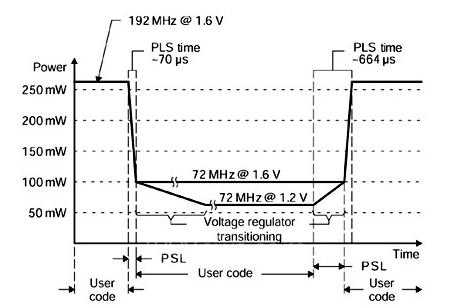 PM還提供了一個(gè)應(yīng)用編程接口(API)庫(kù),可實(shí)現(xiàn)芯片的低功率技術(shù)軟件控制。通過(guò)這些API,應(yīng)用能夠門控時(shí)鐘,激活睡眠模式并安全管理V/F調(diào)節(jié)設(shè)置點(diǎn)之間的晶體管。這些設(shè)置點(diǎn)作為調(diào)節(jié)參數(shù),使V/F能夠按照正確的順序降低和提高,而且具有正確操作所必需的設(shè)置時(shí)間。