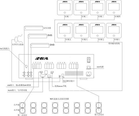 其他:如果 中央智能主機(jī)和作為音源的 DVD 不擺放在一起,DVD 和主機(jī)之間還需要布好音頻線(最好有屏蔽,且距離不要超過 5 米)。 建議DVD和中央智能背景音樂主機(jī)擺在一起,紅外控制器和主機(jī)之間不需要布線。