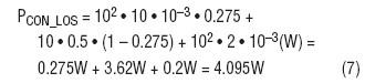 例如,12V輸入、3.3V/10AMAX輸出降壓電源可使用以下元件:MOSFET RDS(ON) = 10mΩ,電感RDCR = 2 mΩ,二極管正向電壓VD = 0.5V。因此,滿負載下的傳導損耗為: