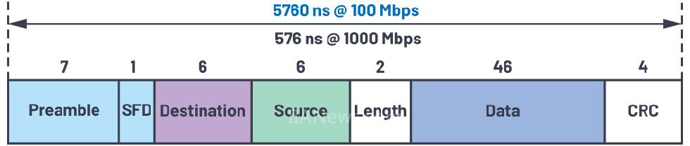 圖3.最小長(zhǎng)度以太網(wǎng)幀的帶寬延遲。