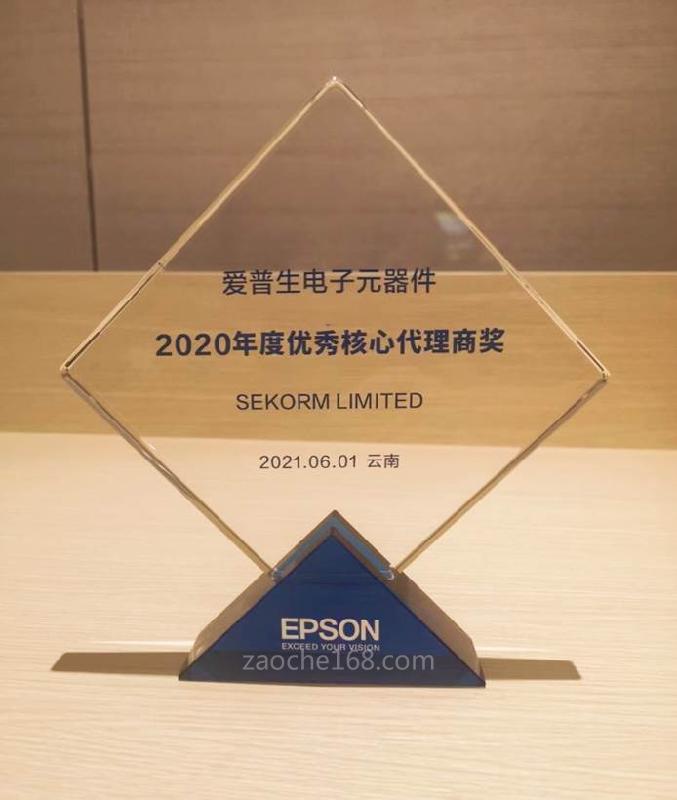 2021年6月1日,在EPSON(愛普生)頒獎晚會上,EPSON(中國)有限公司電子元器件事業(yè)部總經(jīng)理岸本明先生為世強(qiáng)硬創(chuàng)電商頒發(fā)了2020年度“優(yōu)秀核心代理商”獎項,世強(qiáng)連續(xù)6年獲此殊榮。