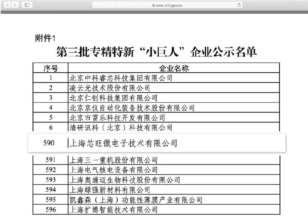 近日,中華人民共和國(guó)工業(yè)和信息化部公示了第三批國(guó)家級(jí)專精特新“小巨人”企業(yè)名單,芯旺微電子被認(rèn)定為專精特新“小巨人”企業(yè)。