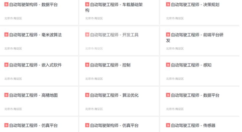 自小米官宣造車后,其相關(guān)動(dòng)作不斷引發(fā)業(yè)界關(guān)注。前不久,有媒體報(bào)道稱,北京、上海、武漢、合肥、西安等地都在爭(zhēng)取小米造車項(xiàng)目,但其大概率會(huì)選擇將總部和首座工廠落戶北京。除了選址落戶問(wèn)題備受業(yè)內(nèi)關(guān)注外,小米汽車對(duì)人才的招攬也是業(yè)界關(guān)注的重點(diǎn)。在小米官宣造車后不久,其官網(wǎng)就發(fā)布了多條招聘信息,招聘崗位涉及數(shù)據(jù)平臺(tái)、車載基礎(chǔ)架構(gòu)、毫米波算法、前端平臺(tái)開(kāi)發(fā)等與自動(dòng)駕駛有關(guān)的崗位,且這些招聘崗位前都加注了“急”字,可見(jiàn)小米汽車對(duì)自動(dòng)駕駛?cè)瞬诺钠惹行枨蟆?/P>