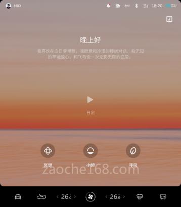 潮汐是一款著名生活健康應(yīng)用App。蔚來基于用戶在車內(nèi)空間的真實(shí)使用場景需求,推出車內(nèi)潮汐應(yīng)用。潮汐應(yīng)用提供小憩、冥想與呼吸三種模式,通過融合沉浸式背景音(支持5.1聲道)及聯(lián)動座椅、空調(diào)、燈光、音響等設(shè)備,打造更舒適愜意的車內(nèi)空間。