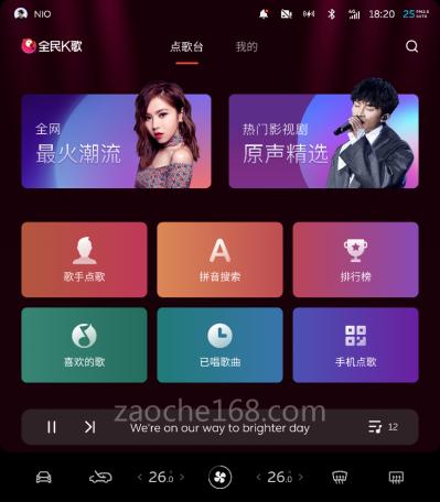 全民K歌是一款廣受歡迎的手機(jī)K歌交友軟件。為使車內(nèi)的娛樂體驗(yàn)更加豐富有趣,蔚來推出車內(nèi)卡拉OK應(yīng)用“全民K歌”。全民K歌擁有超過1000萬首的海量曲庫,除屏幕操作點(diǎn)歌外,還支持在車上QQ音樂界面跳轉(zhuǎn)點(diǎn)歌、手機(jī)掃碼點(diǎn)歌。