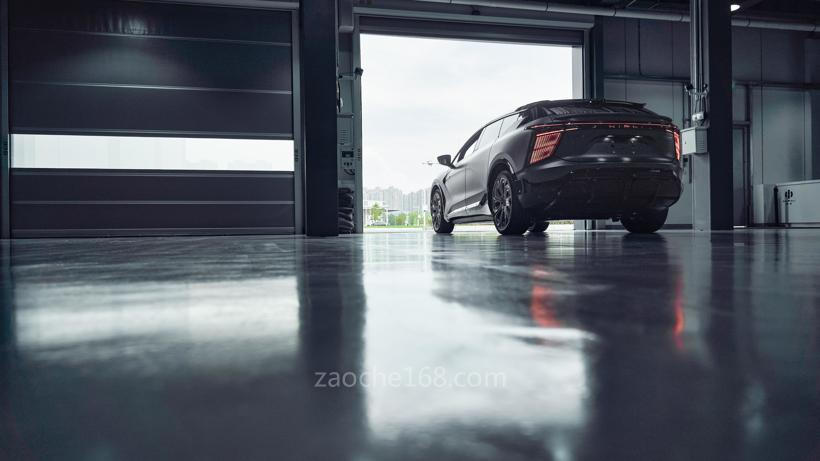 車頭前方銀灰色的工廠庫門已經(jīng)感應(yīng)到車輛信息,緩慢卷起。這輛有著固定編號(hào)的高合HiPhi X正準(zhǔn)備自動(dòng)起步,開到內(nèi)置程序預(yù)先設(shè)定的工廠固定停車區(qū)。