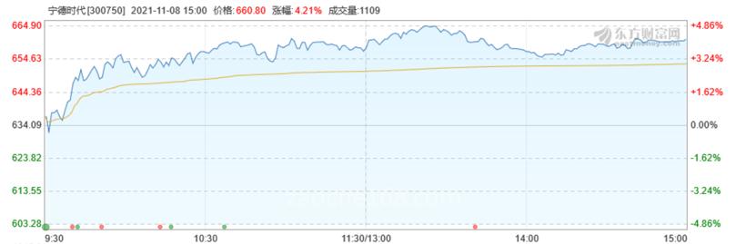 上述公告發(fā)布后,11月8日,寧德時(shí)代盤中快速上漲,5分鐘內(nèi)漲幅超過2%,截至收盤,上漲4.21%,報(bào)660.8元,總市值15390億元。