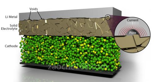 通過使用電化學(xué)脈沖,ORNL研究人員可以消除將鋰金屬陽極材料層與固體電解質(zhì)材料連接時(shí)形成的空隙:在這種情況下,陶瓷石榴石型電解質(zhì)LALZO(Li6.25Al0.25La3Zr2O12)施加短期高壓脈沖會(huì)增加材料界面處的接觸,同時(shí)避免負(fù)面作用。