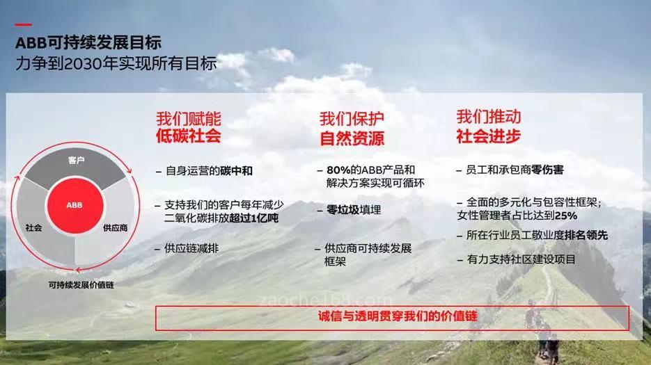 在去年的市場(chǎng)資本日上,ABB公布了集團(tuán)2030年可持續(xù)發(fā)展戰(zhàn)略,重點(diǎn)關(guān)注三大領(lǐng)域:賦能低碳社會(huì)、保護(hù)自然資源、推動(dòng)社會(huì)進(jìn)步。ABB已取得重大進(jìn)展,特別是在減排方面,旨在通過(guò)ABB技術(shù)幫助客戶每年減少二氧化碳排放超過(guò)1億噸,相當(dāng)于3000萬(wàn)輛汽車的年排放量。