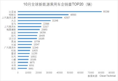 EV Sales最新出爐的榜單印證了上汽乘用車(chē)在海外的戰(zhàn)績(jī)。10月全球新能源乘用車(chē)總銷(xiāo)量達(dá)58.9萬(wàn)輛,同比增長(zhǎng)70%,市場(chǎng)占有率達(dá)到了8.8%。其中比亞迪以80289輛升至榜首,特斯拉下降至第二位,上汽通用五菱保持第三位,大眾、寶馬緊隨其后,上汽乘用車(chē)占據(jù)第六的位置。此外,朋克首次上榜,蔚來(lái)則跌出10月榜單TOP20。