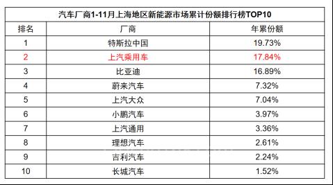 回歸國(guó)內(nèi)市場(chǎng)來(lái)看,新能源市場(chǎng)的持續(xù)走強(qiáng),進(jìn)一步助力中國(guó)品牌產(chǎn)品牢牢占據(jù)銷(xiāo)量主導(dǎo)地位。11月新能源乘用車(chē)批發(fā)銷(xiāo)量達(dá)到42.9萬(wàn)輛,同比增長(zhǎng)131.7%,新能源汽車(chē)表現(xiàn)出對(duì)燃油車(chē)市場(chǎng)的替代效應(yīng),滲透率逐步走高。數(shù)據(jù)顯示,作為全國(guó)新能源車(chē)型銷(xiāo)量最高的省份(直轄市)之一,11月上海新能源汽車(chē)上牌數(shù)為24417輛,占上??偵吓屏康?6.1%,銷(xiāo)量前三的品牌為比亞迪、特斯拉和上汽乘用車(chē)。而在市場(chǎng)份額方面,上汽乘用車(chē)1-11月累計(jì)份額達(dá)到17.84%,排名中國(guó)品牌第一。