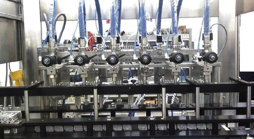 位于意大利的 Fimer 公司為食品和飲料行業(yè)生產(chǎn)灌裝系統(tǒng)。該公司為了某個(gè)橄欖油生產(chǎn)商,制造了一臺(tái)具有6 個(gè)灌裝頭的線性灌裝機(jī)。灌裝機(jī)能夠灌裝各種不同類(lèi)型和大小的包裝瓶。