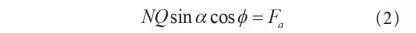 負載影響滾珠絲杠副接觸面的當(dāng)量摩擦因數(shù)。如圖2所示,當(dāng)螺母承受負載時,螺母的軸向載荷由螺母內(nèi)各滾珠受到的接觸載荷軸向分量之和來平衡,假設(shè)各滾珠受載均勻,可得到如下關(guān)系式