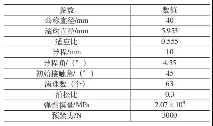 式中,Fa是滾珠絲杠副負載(N),L是滾珠絲杠副導(dǎo)程(mm),McMf分別為承載力矩和摩擦力矩(N·m),f是當(dāng)量摩擦因數(shù),表示滾珠絲杠副接觸面上各種摩擦合成的摩擦力與接觸載荷的比值,rm是絲杠名義半徑(mm),rb是滾珠半徑(mm),α0是初始接觸角(°)。