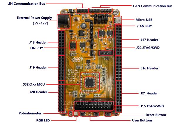 本方案面向通用汽車應(yīng)用,提供豐富的測試組件,包括:板載CAN、LINUART/SCI 接口,并具有microUSB12V電源兩種供電選項(xiàng),可供用戶根據(jù)自己的需求靈活選擇。此外,方案采用的主控MCU——S32K1xx系列是NXP推出的一系列汽車級通用MCU,其基于ARM?Cortex?-M0+/M4F設(shè)計(jì),提供了一個(gè)可擴(kuò)展的平臺,具有面向下一代應(yīng)用的安全性、可擴(kuò)展性、連接性和低功耗特性。憑借著出色的特性,該系列不僅廣泛適用于需要在嚴(yán)苛環(huán)境下工作的電力電子應(yīng)用,也同樣滿足需要利用引腳的低成本應(yīng)用。