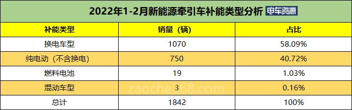 在電動牽引車無法大幅度提升續(xù)航、燃料電池牽引車購車以及使用成本高的情況下,混動牽引車具備新能源的特性,又可以加載燃油給車輛續(xù)航,作為過渡車型妥善處理了車輛續(xù)航問題,在2022年開始有一定的銷量,在1-2月銷售了3輛混動牽引車。
