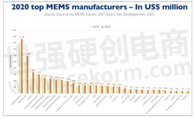 在全球17家主流MEMS芯片代工廠,除了寶島臺灣的臺積電、世界先進、聯(lián)電等傳統(tǒng)代工廠,中國本土只有賽微電子收購的位于海外瑞典的Silex入榜,再無其他本土MEMS代工廠入圍,可見中國大陸本土傳感器芯片產(chǎn)業(yè)對全球供應鏈影響力幾乎為0。