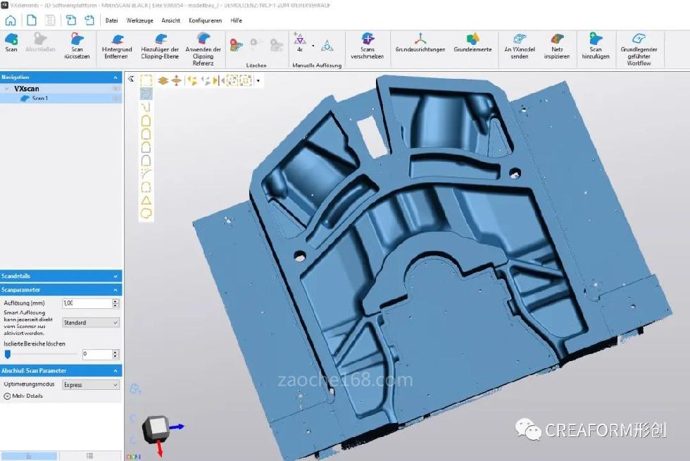 在本案例中,必須掃描一個未完成的發(fā)動機模型設(shè)備部件,然后再掃描一個已完成的部件。Duisburger Modellfabrik GmbH 公司的每個項目理論上都遵循以下模式: