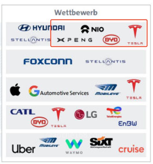 十分有趣的是,就在上月,網絡中流出了一張大眾集團CEO迪斯發(fā)表的內部PPT截圖,首次對外曝光了其在品牌、整車、技術平臺、軟件、電池等領域的主要競爭對手。