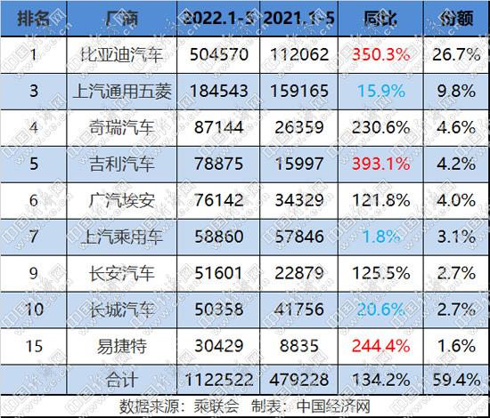 今年以來,比亞迪汽車產(chǎn)銷大幅增長(zhǎng),在各細(xì)分市場(chǎng)頻頻獲得突破,而產(chǎn)值突破萬(wàn)億元、斬獲4月全球動(dòng)力電池榜亞軍、將向特斯拉供貨電池等更是讓其屢屢成為業(yè)界炙手可熱的話題。在王傳??磥恚妱?dòng)化進(jìn)程正在加速,誰(shuí)的資源多、供應(yīng)鏈更完善、產(chǎn)品優(yōu)勢(shì)更大,誰(shuí)就能贏得更大的市場(chǎng)?!艾F(xiàn)在不是大魚吃小魚,而是快魚吃慢魚,只有在快的過程中才能超車?!?BR> 在比亞迪的帶領(lǐng)下,傳統(tǒng)新能源自主品牌普遍表現(xiàn)不俗,5月銷量均在萬(wàn)輛以上,特別是上汽乘用車、長(zhǎng)城汽車等上月受疫情影響較大的車企,5月都實(shí)現(xiàn)了不小的回升。從前5月看,上汽通用五菱累計(jì)銷量已超過18萬(wàn)輛;奇瑞、吉利、廣汽埃安也都在8萬(wàn)輛上下;上汽乘用車、長(zhǎng)安、長(zhǎng)城則都在5萬(wàn)輛以上,成為推動(dòng)新能源車市增長(zhǎng)的主要力量。