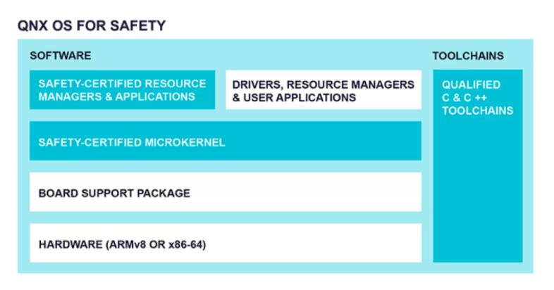 基于黑莓先進(jìn)且安全的QNX Neutrino實時操作系統(tǒng)(RTOS)打造,QNX OS for Safety是一個完全符合POSIX標(biāo)準(zhǔn)并基于開放標(biāo)準(zhǔn)的操作系統(tǒng),嵌入式開發(fā)人員可借此構(gòu)建安全關(guān)鍵系統(tǒng)。此外,QNX OS for Safety已通過汽車行業(yè)最高功能安全標(biāo)準(zhǔn)ISO 26262 ASIL D級認(rèn)證。