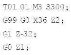 工件左端內(nèi)孔,數(shù)控車1程序如下:
