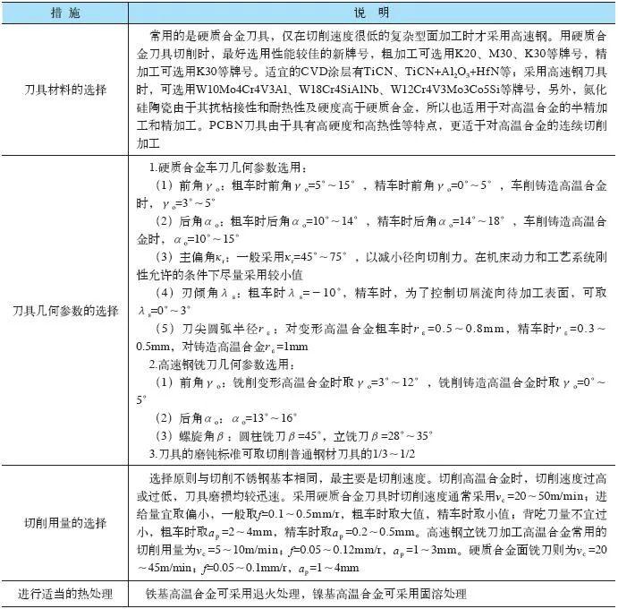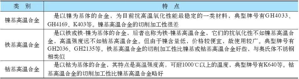 注:高溫合金除按化學(xué)成分分類外,還可以按其生產(chǎn)工藝分為變形高溫合金及鑄造高溫合金兩大類。前者高溫塑性好,能接受鍛造等壓力加工成型,后者含有較多的W、Mo、Ti、Al等強化元素及較高的含碳量,熱強度高,塑性差,只能在鑄態(tài)下使用。鑄造高溫合金比變形高溫合金更難切削加工。