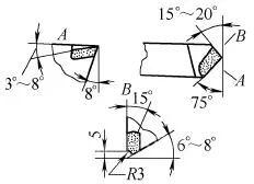 特色點(diǎn)四:刀具材料選用YW1硬質(zhì)合金刀片,刀具如圖5所示。
