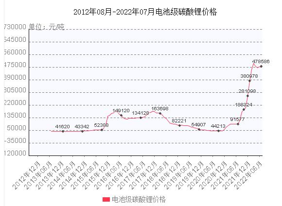 為何兩大巨頭在鋰回收上嗆聲?其背景是近兩年電池上游原材料的價(jià)格暴漲。以碳酸鋰為例,2020年約為4萬多元/噸,自2021年以來一路暴漲,其中電池級碳酸鋰從2021年初的7.2萬元/噸持續(xù)上漲到如今的約48萬元/噸。中信證券、中國銀河證券等機(jī)構(gòu)還預(yù)測,鋰價(jià)全年將維持高位運(yùn)行。