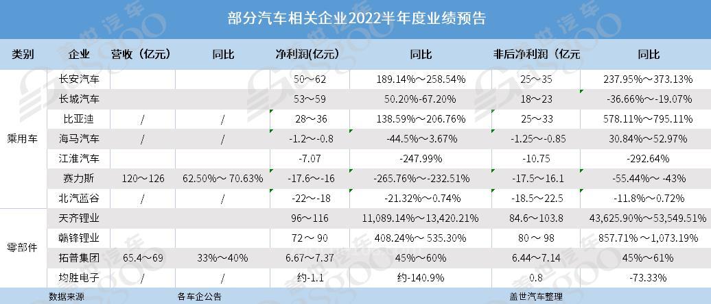 今年上半年,整車企業(yè)的日子普遍不好過。已發(fā)布2022年半年報(bào)業(yè)績預(yù)告的7家乘用車上市企業(yè)中,僅有長安、比亞迪和長城三家實(shí)現(xiàn)凈利潤預(yù)增,其中長安最高,長城次之。