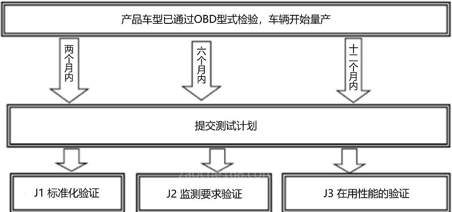 在輕型汽車污染物排放限值及測量方法(中國第六階段)中,除了對汽車尾氣排放等制定了更為嚴(yán)格的限制之外,也在OBD系統(tǒng)認(rèn)證項(xiàng)目中增加了新的要求——量產(chǎn)車評估(Production Vehicle Evaluation)測試。該測試由J1標(biāo)準(zhǔn)化驗(yàn)證、J2監(jiān)測要求驗(yàn)證以及J3在用監(jiān)測性能驗(yàn)證三部分組成,主要是為了確保各主機(jī)廠批量生產(chǎn)的汽車、系統(tǒng)、部件及獨(dú)立技術(shù)總成與已型式檢驗(yàn)(已檢驗(yàn)過的車輛)的車型一致。