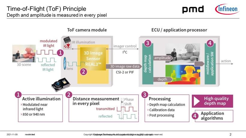 新能源汽車和智能駕駛是未來(lái)汽車行業(yè)的增長(zhǎng)引擎,信息娛樂(lè)系統(tǒng)在其中發(fā)揮著重要作用。英飛凌在汽車信息娛樂(lè)領(lǐng)域擁有非常豐富的產(chǎn)品和應(yīng)用,傳感器是其最具有優(yōu)勢(shì)的產(chǎn)品之一。英飛凌在傳感器方面擁有40余年經(jīng)驗(yàn),在過(guò)去10年,出貨量已超過(guò)200億顆。近期,英飛凌推出了與湃安德(pmd)合作開(kāi)發(fā)的第二代REAL3? 3D ToF(飛行時(shí)間)車用圖像傳感器。這款傳感器體積小巧,分辨率高,符合AEC-Q100 Grade 2標(biāo)準(zhǔn),是全球首款按照ISO26262ASIL-B)標(biāo)準(zhǔn)開(kāi)發(fā)的解決方案,更適合車內(nèi)的應(yīng)用場(chǎng)景。