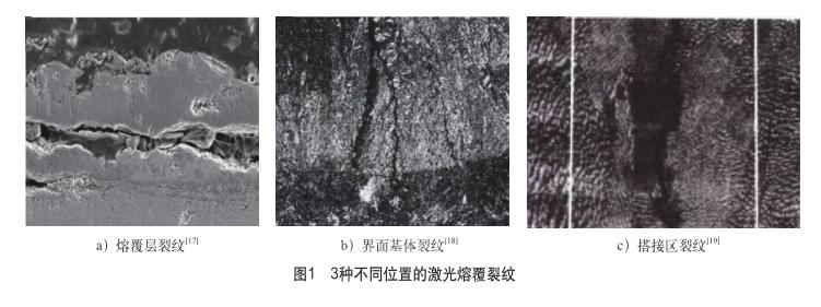 根據(jù)裂紋產(chǎn)生的位置,裂紋分為熔覆層裂紋、界面基體裂紋、搭接裂紋,如圖1所示。