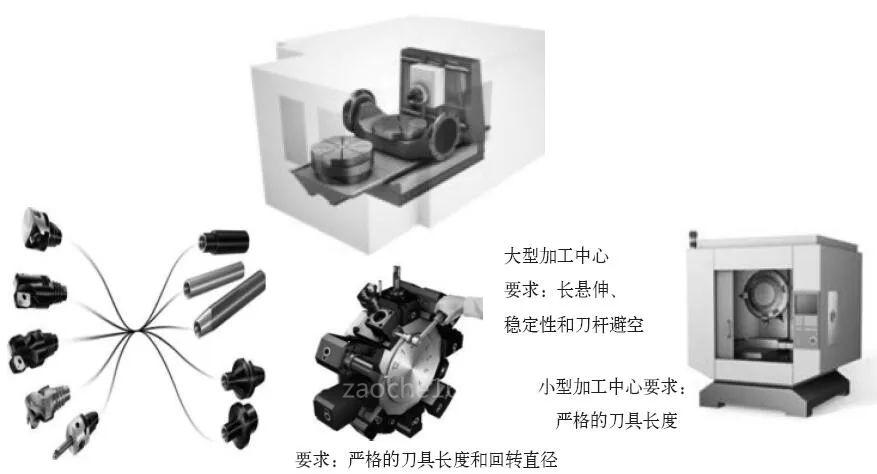 (3)模塊化可換頭系統(tǒng)可提供所需可達(dá)性,但不限制加工安全性的應(yīng)用,例如航空工業(yè)中銑削和鏜削深型腔。