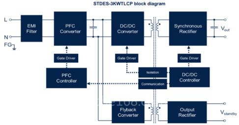 圖示3-大聯(lián)大友尚基于ST產(chǎn)品的數(shù)字控制3KW通信電源方案的方塊圖