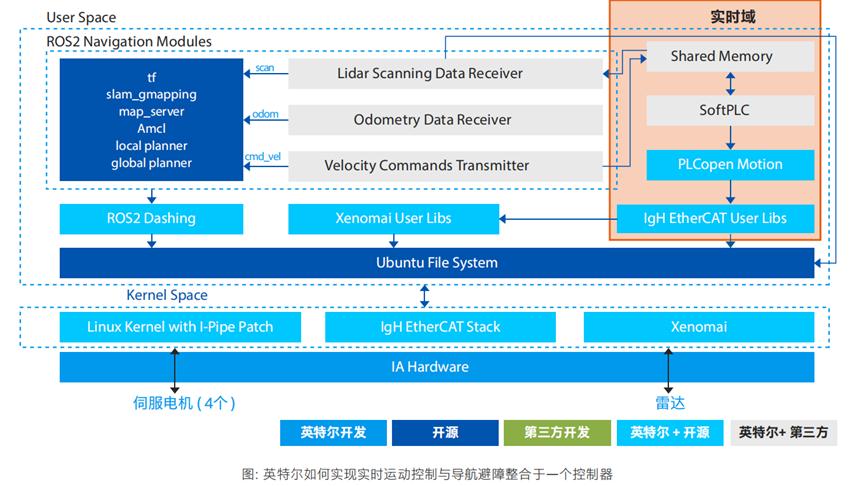 在技術(shù)方面,基于移動機(jī)器人對環(huán)境感知、運(yùn)動控制等功能性能的高要求,英特爾嘗試將實(shí)時運(yùn)動控制與導(dǎo)航避障融為一體,整合在一臺多核處理器的控制器上。