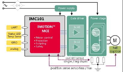 IMC101T-T038是IMC100系列的產(chǎn)品,其內(nèi)置Infineon面向下一代的運(yùn)動(dòng)控制引擎(MCE 2.0)。該引擎不僅實(shí)現(xiàn)了磁場定向控制(FOC),而且消除了開發(fā)電機(jī)控制算法時(shí)所需的軟件編碼需求。