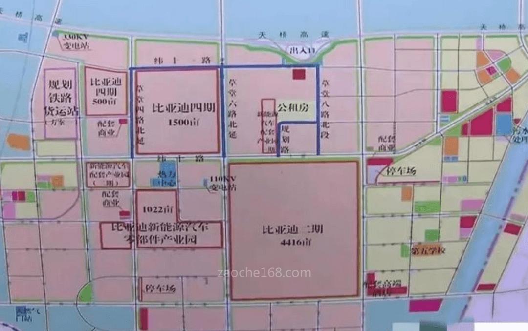 比亞迪四期在草堂四路(原戶縣八號路)兩側,總占地2000畝,周邊規(guī)劃有鐵路貨運站,項目最快2023年6月建成,現(xiàn)有的一二期年產(chǎn)能可以達到60萬輛,擴建增產(chǎn)后三期年產(chǎn)能將達到90萬輛,有望成為比亞迪首個年產(chǎn)破100萬輛的超級工廠。