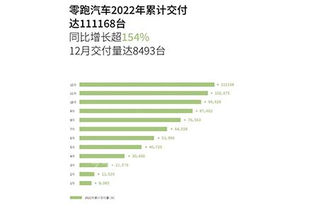 日前,零跑汽車公布了2022年12月份及全年銷量情況。其中,12月份交付新車8493輛;2022年累計(jì)交付新車達(dá)111168輛,累計(jì)交付同比增長超154%。