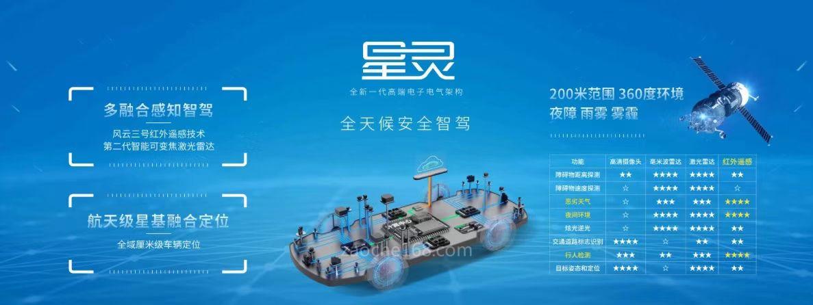 在第三代電子電氣架構(gòu)EEA 3.0基礎(chǔ)上,星靈架構(gòu)通過風(fēng)云三號(hào)紅外遙感技術(shù)、第二代智能可變焦激光雷達(dá)、航天級(jí)星基定位融合等多項(xiàng)全球領(lǐng)先技術(shù),針對(duì)智駕安全進(jìn)行了全面升級(jí)。