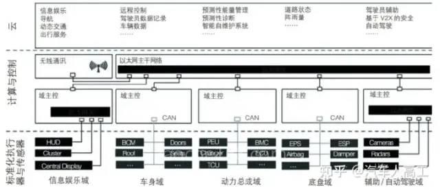 1 )一個 ECU 負責特定的功能,比如車上的燈光對應有一個控制器,門對應有一個控制器,無鑰匙系統(tǒng)對應有一個控制器。隨著汽車功能增多這種架構日益復雜無法持續(xù)。