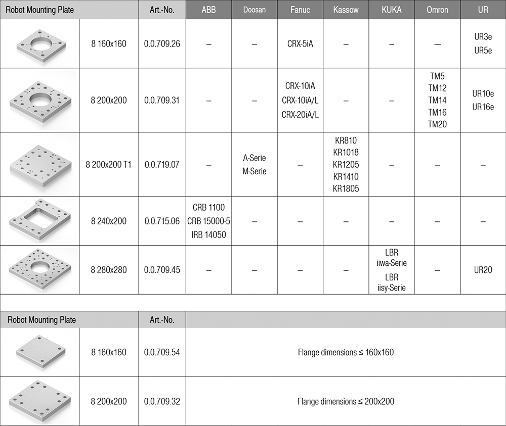 “如果您想在 item 工作臺(tái)上安裝機(jī)器人,可以使用特殊的機(jī)器人安裝板,它適合所有主流制造商生產(chǎn)的各種協(xié)作型機(jī)器人。”