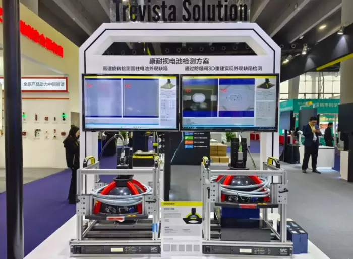 Trevista CI Dome是康耐視新推出的集成軟硬件成像和檢測方案,利用“從明暗恢復形狀”專利技術(shù),快速生成高質(zhì)量拓撲圖像,結(jié)合VisionPro軟件的AI視覺工具,精確分析并區(qū)分表面缺陷?,F(xiàn)場展示的電池檢測方案凸顯了其檢測圓柱電池外觀缺陷的高速旋轉(zhuǎn)能力以及通過防爆閥3D重建實現(xiàn)外觀缺陷檢測的實力。