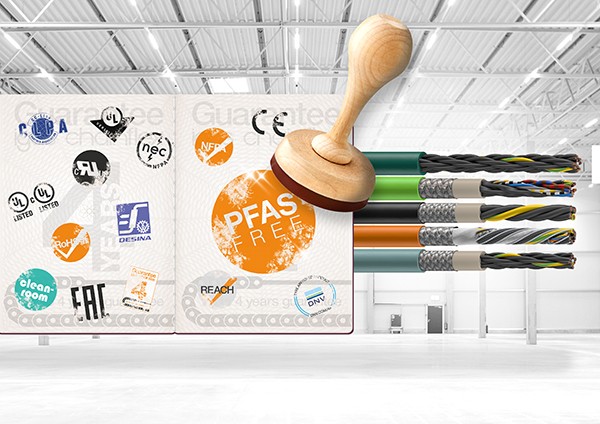 PFAS和PTFE這些縮寫,實際上指的是很多日常應用中都會用到的化合物。聚四氟乙烯(PTFE)的品牌名稱特氟龍可能更加為人所熟知。全氟和多氟烷基物質(zhì)(PFAS)可以在帶涂層的衣物、烘烤紙、滅火器和化妝品,以及很多塑料中找到。由于PFAS在環(huán)境中很難降解且會長久存在,歐盟目前正在推動對它的限制甚至是禁令,其中涉及10000多種PFAS化合物。為了及早防范可能出臺的禁令,越來越多的工業(yè)企業(yè)開始要求他們供應的塑料不含PFAS?,F(xiàn)在,igus為其chainflex高柔性電纜粘貼了“不含PFAS”標簽,明確對此作出了保證。